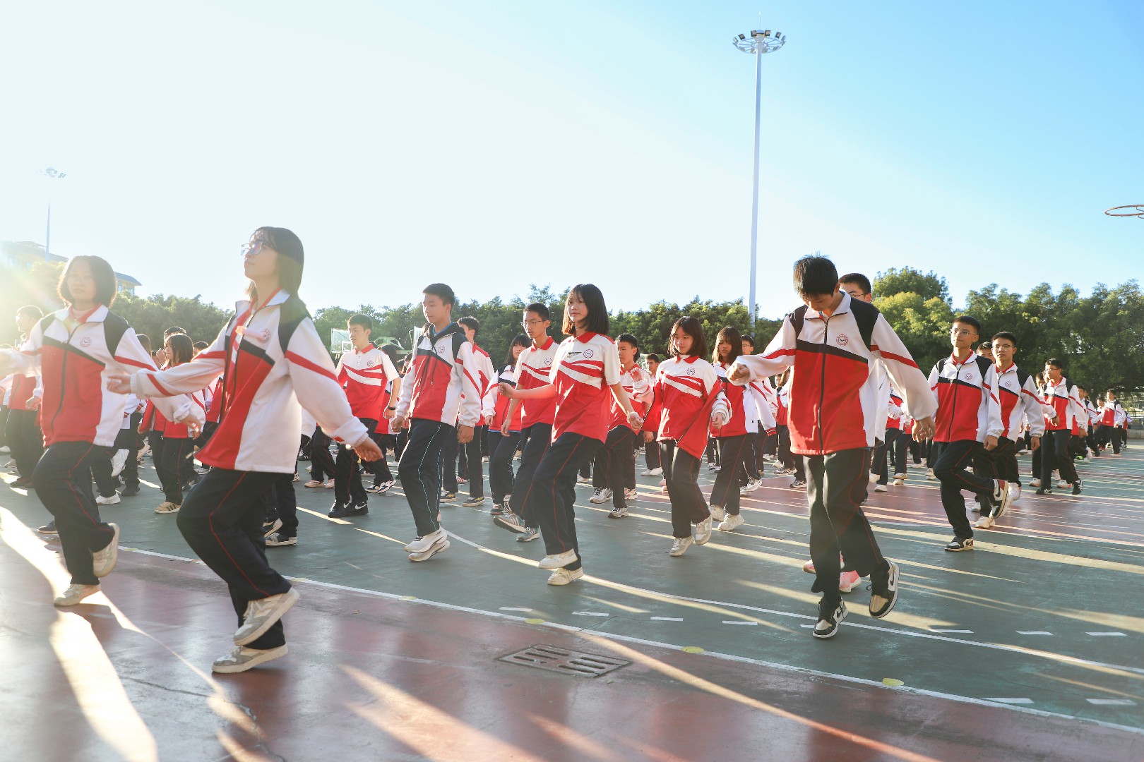 音乐响起,文化的种子便已悄然浸润心田;舞步飞扬,青春的活力在此刻尽情迸发。踏地为节、携手而舞间,同学们舒展身心、强健体魄,让课间成为绽放青春、提升体能的活力时光,更成为一堂生动的民族文化体验课,让优秀传统文化在青春的舞步中得以传承与活化,让民族团结的种子在欢声笑语中深深扎根。